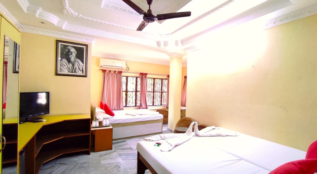 Located just 1 km from Visva-Bharati University and Prantik Railway Station (4 km from Bolpur Railway Station), our double-storied resort offers a serene retreat surrounded by nature and key attractions like the Khoyai River, Sonajhuri Fair, Amar Kutir, and Deer Park.
